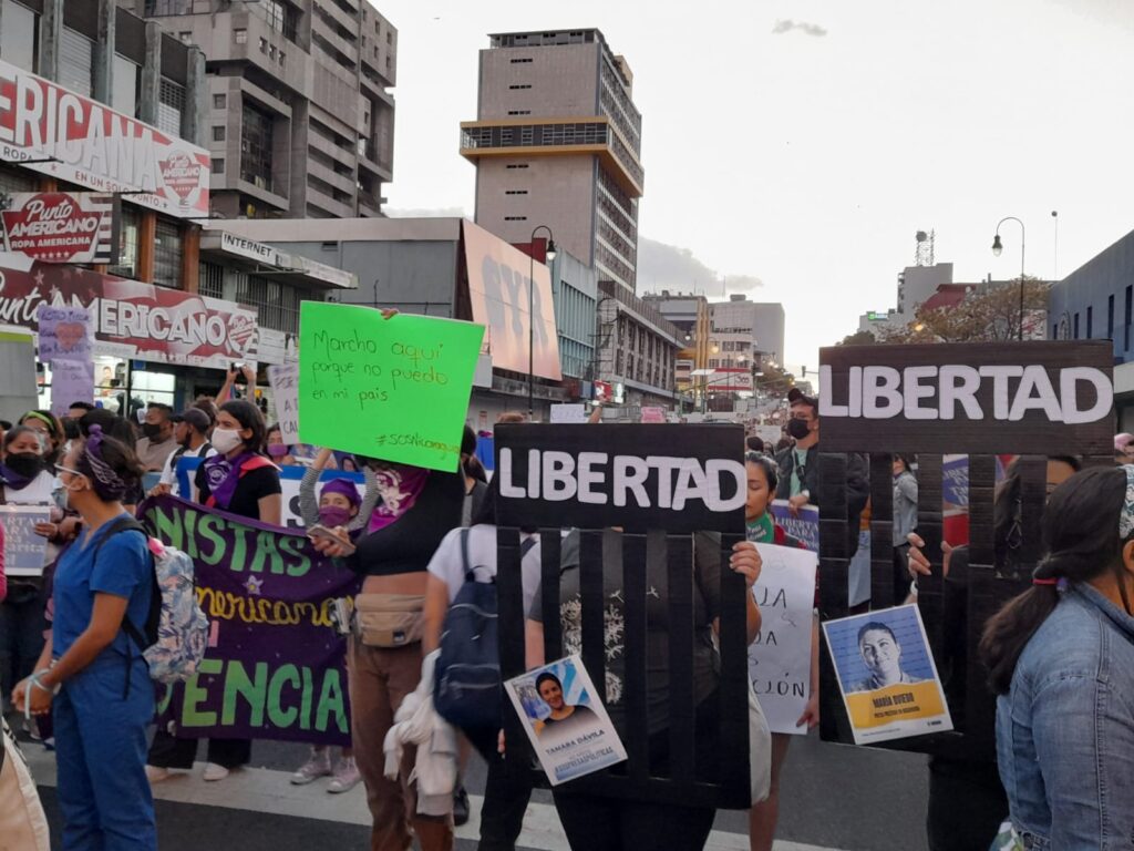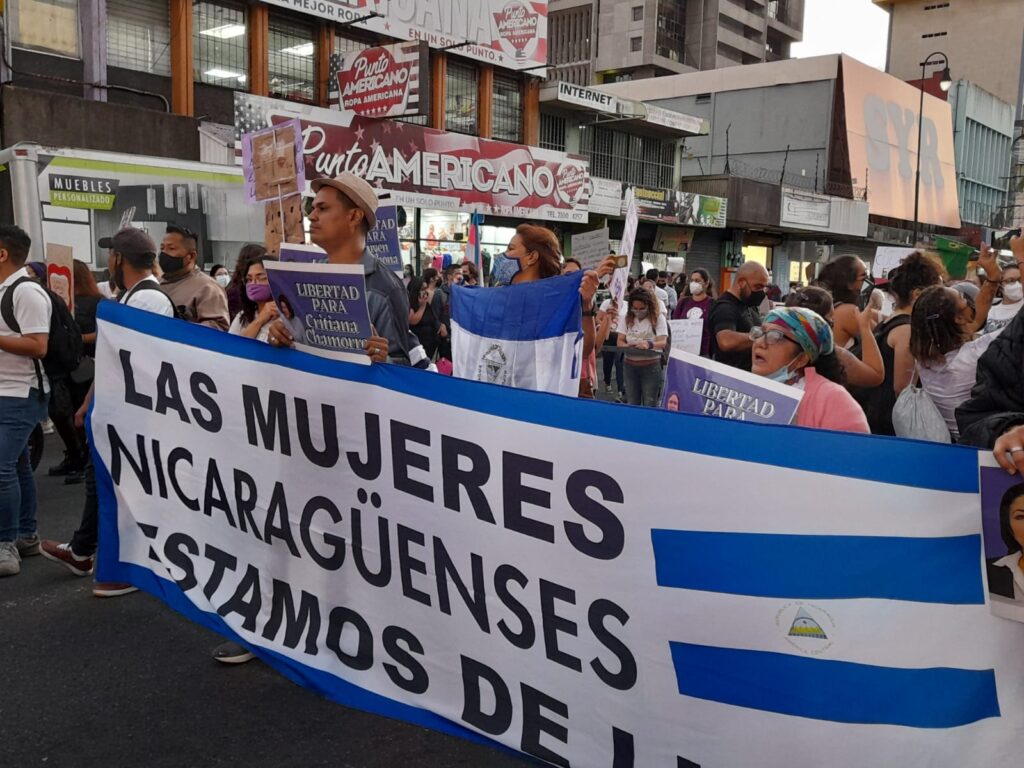 Las consignas también llegaron desde mujeres extranjeras. Ana Quirós es una nicaragüense que se manifestó en el país, con otro grupo de compatriotas, para pedir la libertad de las detenidas políticas en la nación vecina.