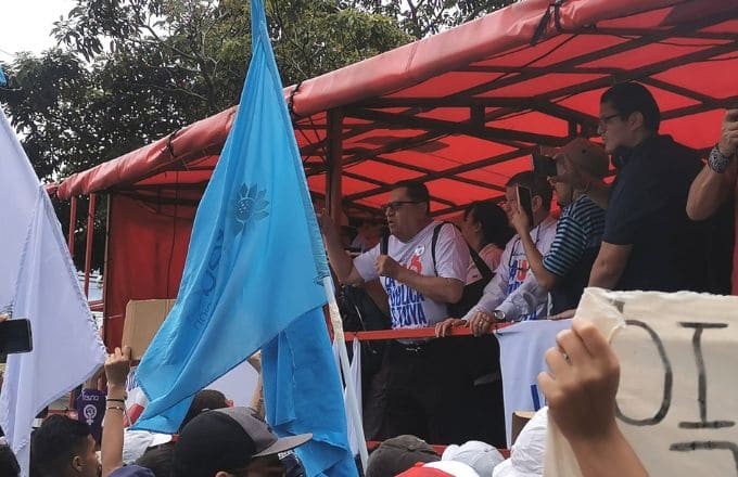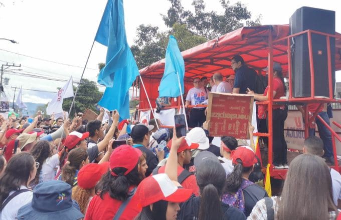 El presidente del Consejo Nacional de Rectores (Conare), Rodrigo Arias Camacho, hizo el anuncio en una tarima móvil y los