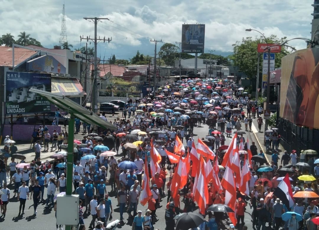Estudiantes, docentes, sindicatos y, en general, decenas de personas caminan hacia Zapote como reclamo por el deseo del Gobierno de