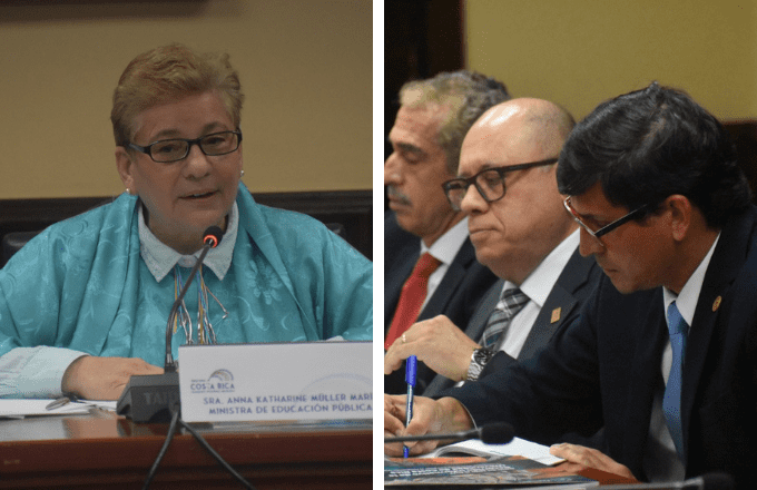 Ministra de Educación, Katharina Müller, y su viceministro, Leonardo Sánchez, explicaron la propuesta en la Asamblea Legislativa, como una solución