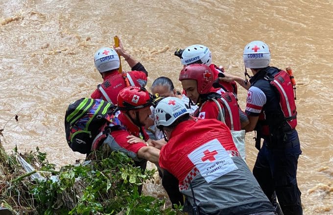 Los aguaceros provocaron desbordamiento de ríos y quebradas, inundaciones y fue necesario el rescate de personas. Foto: Cruz Roja. Un