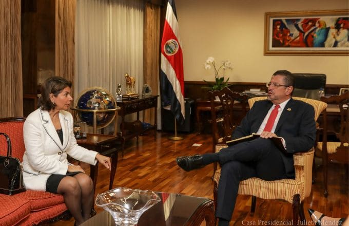 El presidente de la República, Rodrigo Chaves, recibió este viernes a la expresidenta, Laura Chinchilla para conversar sobre las opciones