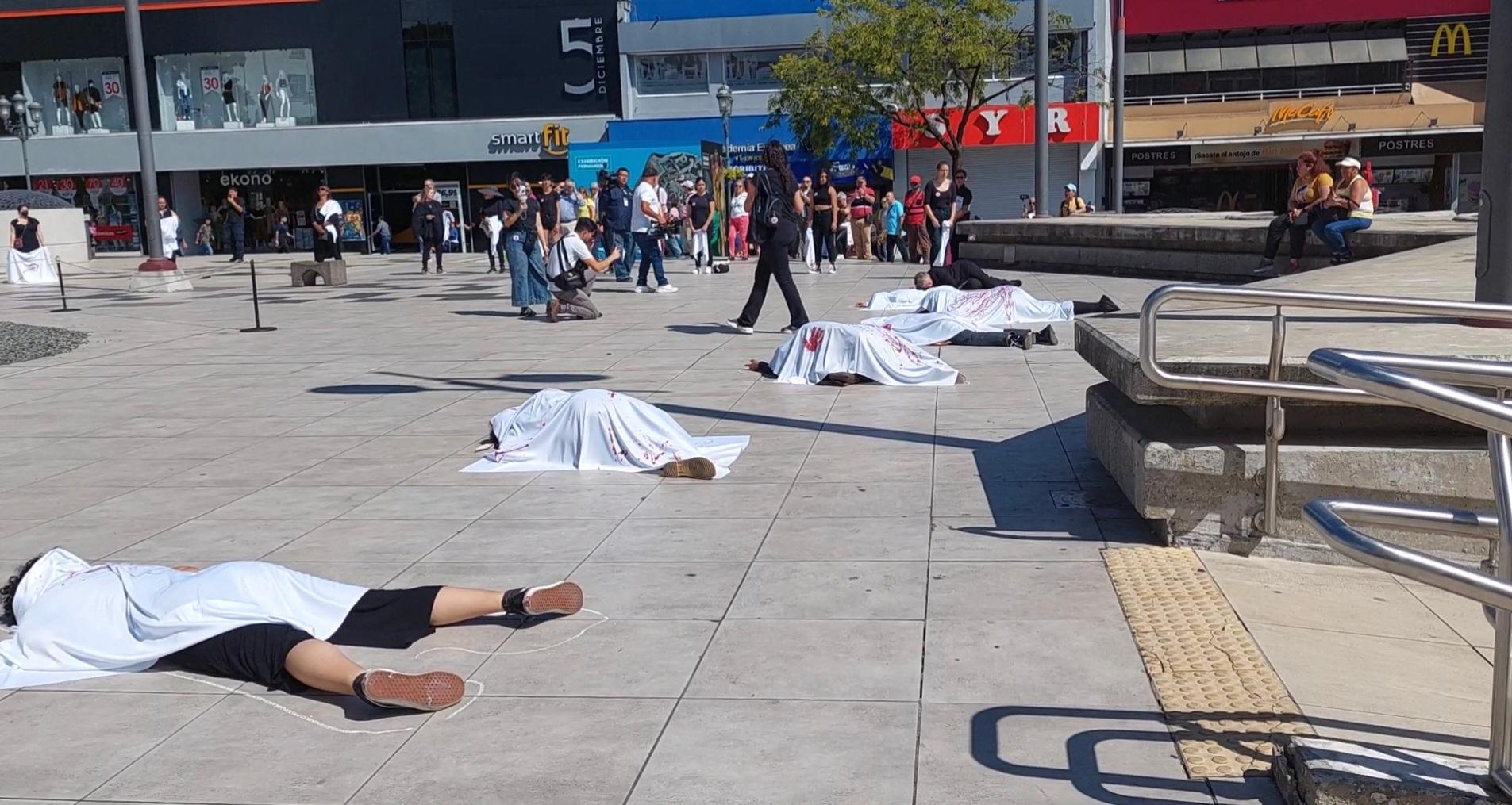 Este miércoles, a partir de las 9 a.m., alrededor de 100 mujeres se postraron como “cadáveres” en la Plaza de