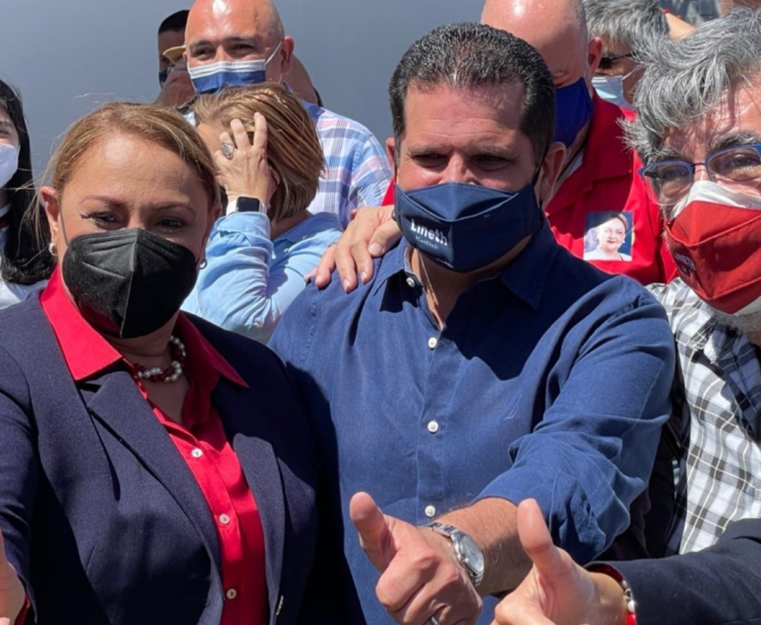 El candidato presidencial del Partido Progreso Social Democrático, Rodrigo Chaves, y la recién electa diputada de esta agrupación, Pilar Cisneros,