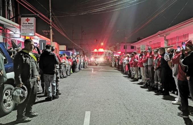 El cuerpo fue escoltado desde la morgue judicial en San Joaquín de Flores, hasta Cartago. A las 9:50 p.m. de este viernes, sus compañeros y allegados hicieron un recorrido que pasó frente a la entrada de emergencias del hospital Max Peralta.