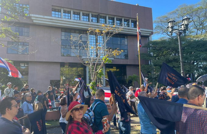 Cientos de personas se congregaron este viernes frente al TSE para protestar ante desinscripción de Partido Aquí Costa Rica Manda