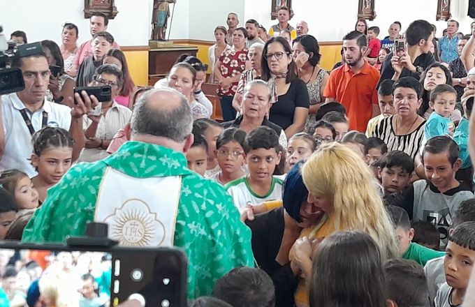 El padre Sergio Valverde hizo una oración por la bisabuela y la abuela de la bebé quienes asistieron a la