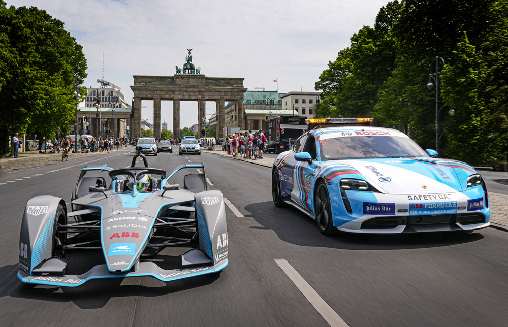 Simona De Silvestro, del equipo TAG Heuer Porsche, condujo el más moderno monoplaza de Fórmula E desde Alexanderplatz hasta Potsdamer