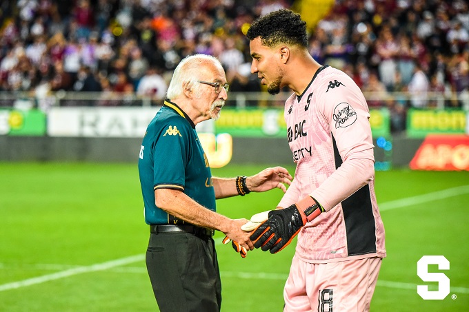 Cuando Saprissa ganaba 2×0 San Carlos tuvo dos ocasiones claras de gol, cara a cara con Esteban Alvarado, pero el