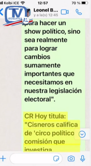 Por su parte, Cisneros manifestó que estas declaraciones son una mentira e incluso mostró durante su intervención una serie de mensajes que intercambió con Baruch.