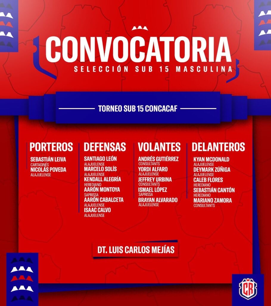 Estos son los 18 jugadores convocados por el DT Luis Carlos Mejías de la Selección Sub-15 Masculina para el Torneo de CONCACAF:
