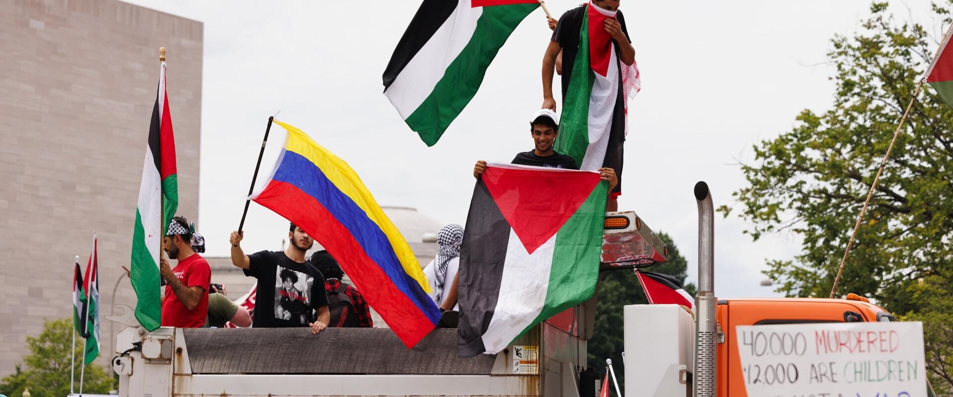 Miles de personas se reunieron en los alrededores del edificio en una marcha legal y autorizada para protestar la visita.
